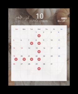 10月のお休み